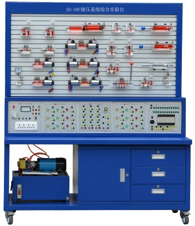 液壓系統綜合實(shí)驗裝備要求依據國家高等院校通用教材設計,涉及液壓技術(shù)、傳統繼電器控制技術(shù)、時(shí)間繼電器技術(shù)、PLC自控技術(shù)、傳感器器應用技術(shù)等,適合高等院校液壓教學(xué)實(shí)驗專(zhuān)用。所有液壓元件的外殼體要求采用進(jìn)口高清晰透明可視化材料,內部均按照工業(yè)液壓元件的實(shí)際結構設計。裝備功能上要求能真實(shí)的反映單個(gè)工業(yè)液壓元件的靜態(tài)構造原理,由多個(gè)透明液壓元件組成的任意回路,可清楚地觀(guān)察流體在閥體中的流向和工業(yè)液壓元件閥芯在回路中的動(dòng)態(tài)原理,原理簡(jiǎn)單,回路清晰。