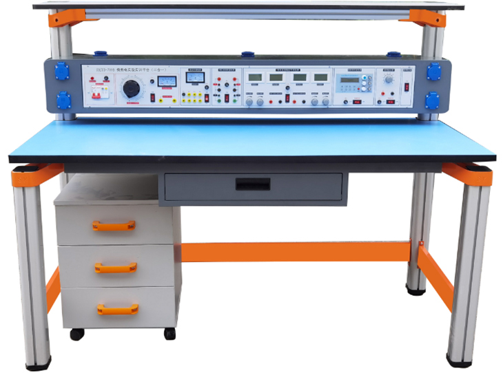 三、模數電實(shí)驗實(shí)訓裝置基本配置及功能:模數電實(shí)驗實(shí)訓臺主要由實(shí)訓主機箱、儀器架、電源控制箱、獨立實(shí)訓電路模塊、實(shí)訓桌(含磁吸式實(shí)訓基座)、儲存柜、學(xué)生凳等組成。