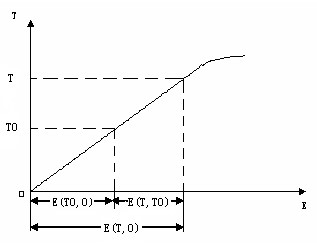 2)標準熱電偶法,將待標熱電偶與標準熱電偶一起置于恒溫介質(zhì)中,逐點(diǎn)改變恒溫介質(zhì)的溫度,待熱電偶處于熱平衡狀態(tài)下測出每一點(diǎn)的溫差電勢。熱電偶的T-E特性曲線(xiàn)如下圖3: