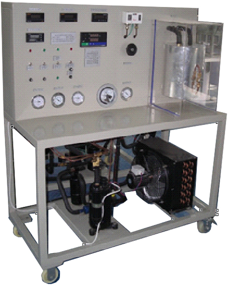 " 壓縮機性能試驗臺(電量熱計法)"采用蒸汽壓縮式制冷循環(huán)系統,配備制冷壓縮機、不銹鋼冷凝器、蒸發(fā)器等制冷系統真實(shí)部件,并設有彩色控制屏、制冷劑流量調節控制器,電子膨脹閥,渦輪流量計、壓力變送器、電壓、電流、功率、合相有功功率、各相無(wú)功功率、合相無(wú)功功率、各相視在功率、合相視在功率、采集器。不但能開(kāi)設制冷壓縮機性能參數的測定實(shí)訓,還能進(jìn)行制冷循環(huán)基本原理的演示實(shí)訓。適用于職業(yè)院校制冷專(zhuān)業(yè)相關(guān)課程的教學(xué)實(shí)訓。