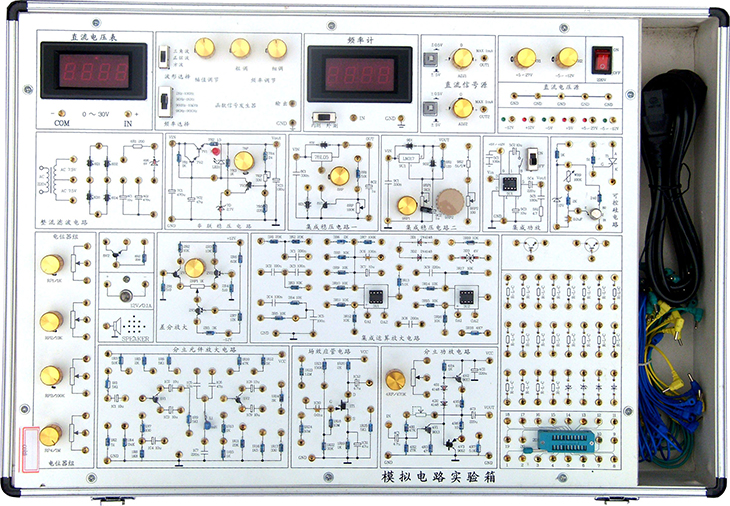 模擬電路實(shí)驗箱是以《高等工業(yè)學(xué)校電子技術(shù)基礎課程教學(xué)基本要求》中確定的教學(xué)實(shí)驗要求為基礎,包括了《模擬電子技術(shù)基礎》課程全部實(shí)驗內容,是專(zhuān)為各大專(zhuān)院校、中等專(zhuān)業(yè)學(xué)校和電大、職大等學(xué)生學(xué)習電子技術(shù)、電子線(xiàn)路等課程開(kāi)發(fā)的最新型實(shí)驗設備。