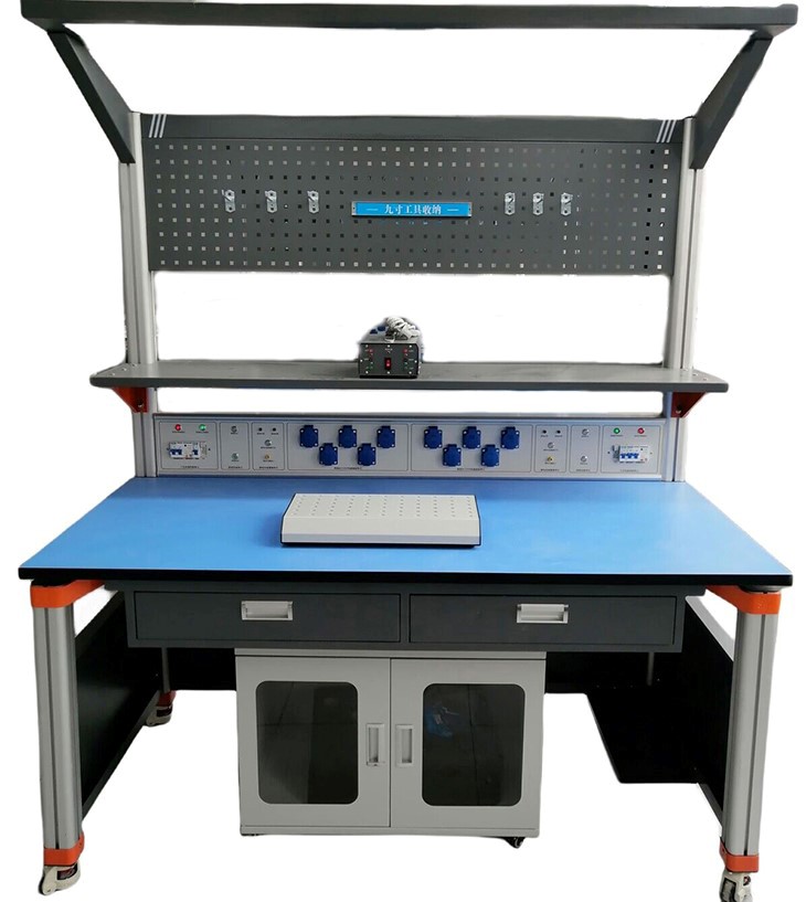 4、工具柜:不含輪尺寸 720mm×500mm×485mm(長(cháng)×深×高),用優(yōu)質(zhì)冷軋鋼板焊接而成,表面靜電噴塑。工具柜下裝帶剎車(chē)的萬(wàn)向輪,使工具柜可以隨意固定和移動(dòng),可放置實(shí)訓電路板、元器件、工具、耗材等。