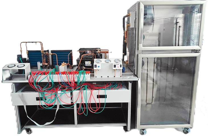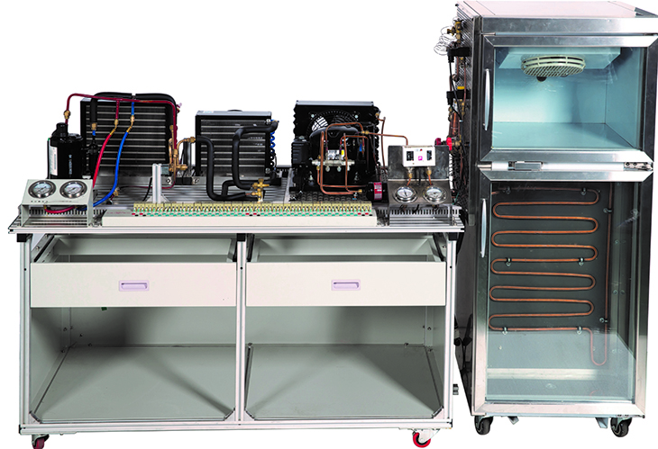 制冷與空調綜合技能實(shí)訓裝置是專(zhuān)門(mén)為職業(yè)院校開(kāi)設的制冷類(lèi)相關(guān)專(zhuān)業(yè)而研制的,裝置根據制冷類(lèi)行業(yè)中空調與冰箱維修技術(shù)的特點(diǎn),針對空調、冰箱及雙溫冷柜的電氣控制以及制冷系統的安裝與維修進(jìn)行設計,強化了學(xué)生對空調冰箱及雙溫冷庫系統管路的安裝、電氣接線(xiàn)、工況調試、故障診斷與維修等綜合職業(yè)能力。裝置融合了流體力學(xué)、熱力學(xué)、傳熱學(xué)和電氣控制等技術(shù),適合制冷類(lèi)相關(guān)專(zhuān)業(yè)的教學(xué)和培訓。
