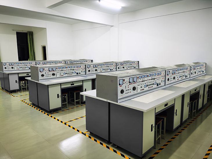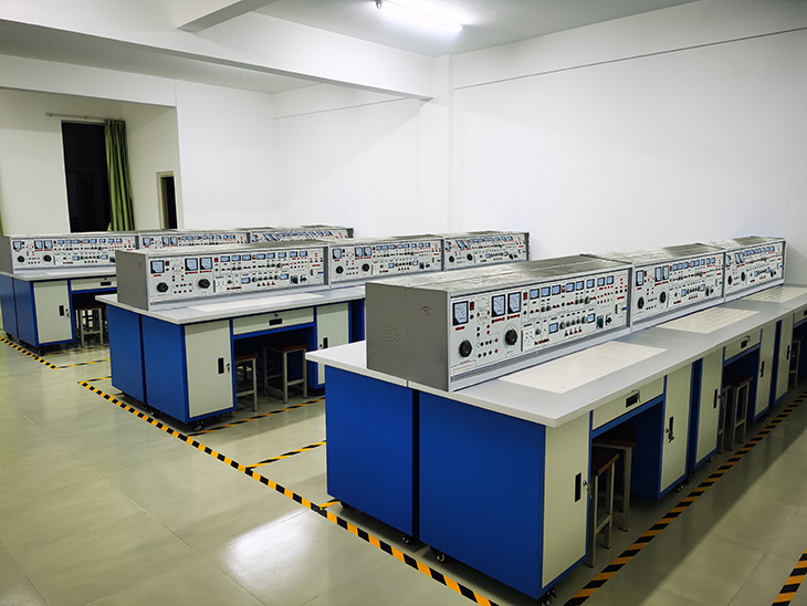 電工電子實(shí)驗室設備具有較完善的安全保護措施,較齊全的功能(詳見(jiàn)實(shí)驗臺結構簡(jiǎn)介)。實(shí)驗桌中央配有通用電路板,電路板注塑而成,表面布有九孔成一組相互聯(lián)通的插孔,元件盒在其上任意拼插成實(shí)驗電路,元件盒盒體透明,直觀(guān)性好,盒蓋印有永不褪色元件符號,線(xiàn)條清晰美觀(guān)。盒體與盒蓋采用較科學(xué)的壓卡式結構,維修拆裝方便。元器件放置在實(shí)驗桌下邊左右柜內,大大提高了管理水平,規劃化程度,大大減輕了教師實(shí)驗準備工作。