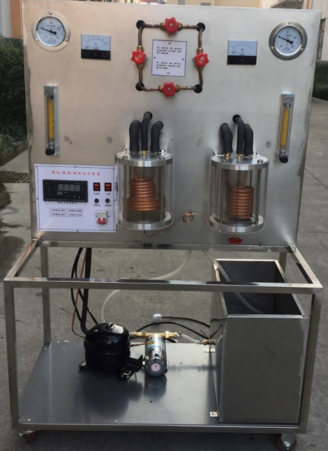制冷熱泵循環(huán)演示裝置適用于制冷、空氣調節、食品冷凍、家電等專(zhuān)業(yè)的教學(xué)。系統中的壓縮機、蒸發(fā)器、冷凝器采用透明耐壓玻璃作殼體,可直接觀(guān)察到制冷劑的蒸發(fā)和冷凝現象,并通過(guò)進(jìn)出水溫的變化可觀(guān)測制冷效果。