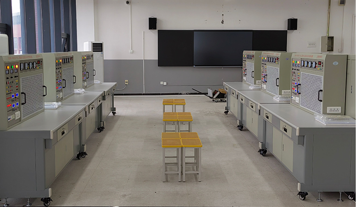 1、學(xué)生實(shí)訓操作桌12張,一桌二座,桌面配備一塊膠皮板保護桌面,桌體下部配備元件儲存柜,放置實(shí)訓考核元器件,使用、保管方便,桌體中部左右設有兩個(gè)抽屜,放置常用工具等。