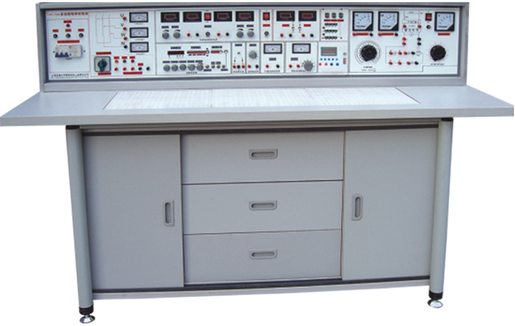 (一)實(shí)驗桌:學(xué)生實(shí)驗桌12張,一桌二座,實(shí)驗桌外形尺寸為160×70×80cm。桌子中央配置九孔電路插板,電路板注塑而成,表面布有九孔成一組相互聯(lián)通的插孔,元件盒在其上任意拼插成實(shí)驗電路。元件盒盒體透明直觀(guān),內裝電阻、電容、電感、二極管、三極管、場(chǎng)效應管、可控硅等元件來(lái)完成原理實(shí)驗。內裝元件一目了然,盒蓋印有永不褪色元件符號,線(xiàn)條清晰美觀(guān)。盒體與盒蓋采用較科學(xué)的壓卡式結構,維修、拆裝方便。繼電部分訓練元器件已裝在特制的元件盒上,實(shí)訓時(shí)插在九孔電路板上即可連線(xiàn)實(shí)驗,方便,靈活。模電、數電實(shí)訓項目由二十幾套實(shí)訓電路板和相應元器件來(lái)完成。每張操作桌配有一粒膠皮板,保護通用電路板和桌面(如需要在桌上放置電動(dòng)機、焊接等) 桌子下部是元器件儲存柜,放置實(shí)驗元件、器材、工具等。
