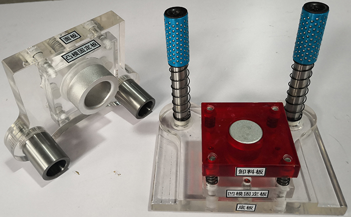 在模具同一位置上能完成幾個(gè)不同的工序的模具.落料凹模在下模處,凸凹模在上模,卸料、凹模、凸凹模均需設有浮動(dòng)頂出結構,并能一次完成落料、沖孔工藝,下模設有擋料銷(xiāo),各零件需精密定位,并有定位銷(xiāo)確保拆裝方便。 |