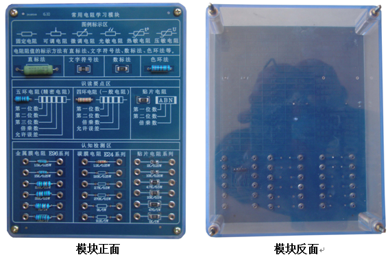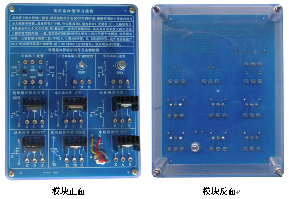 底盒使用190mm×145mm的開(kāi)模有機透明塑料底盒,模塊面板采用印制電路板PCB工藝,可以直觀(guān)看到器件的實(shí)物及相關(guān)的原理介紹。對于典型應用及易損器件安裝在面板背面,透過(guò)透明底盒能夠看到器件實(shí)物,方便感性認識、檢測測試,同時(shí)也能防止器件的損傷。