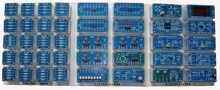 (透明電子元件模塊示例圖,共9塊板,140多只透明有機塑料封閉元件盒)