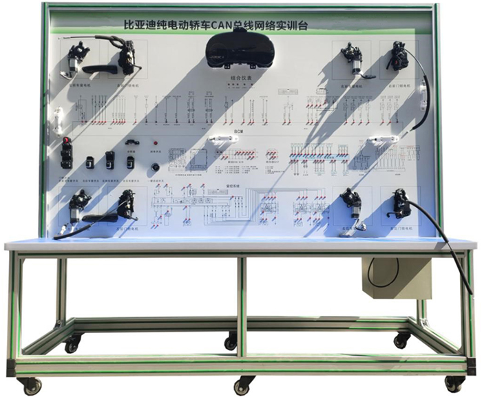 新能源比亞迪車(chē)載網(wǎng)絡(luò )實(shí)訓臺采用比亞迪e5 電動(dòng)汽車(chē)CAN-BUS系統等真實(shí)器件制作的實(shí)驗實(shí)訓臺架,可電動(dòng)汽車(chē)CAN-BUS系統相關(guān)的實(shí)驗實(shí)訓內容。適合于各類(lèi)院校對純電動(dòng)車(chē)CAN總線(xiàn)網(wǎng)絡(luò )系統理論和維修實(shí)訓的拆裝與維護、結構與原理認知、系統操作、功能動(dòng)態(tài)演示、故障檢測與診斷教學(xué)需要。
