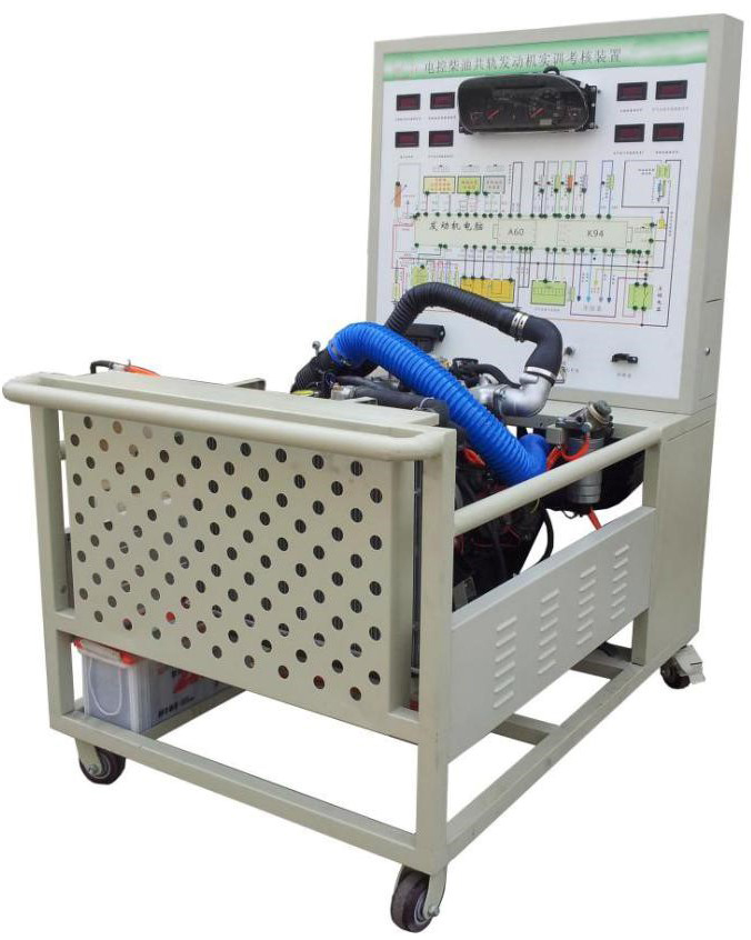 長(cháng)城電控共軌柴油發(fā)動(dòng)機總成、原車(chē)發(fā)動(dòng)機控制電腦、組合儀表、防盜電腦、發(fā)動(dòng)機起動(dòng)運行所有相關(guān)的原車(chē)附件、故障設置和排除系統、原車(chē)電路原理圖板及檢測端子、60AH大容量蓄電池、大容量不銹鋼油箱、發(fā)動(dòng)機加速機構、控制面板柜、可移動(dòng)臺架、臺架電源總開(kāi)關(guān)、OBD診斷座、散熱系統、任務(wù)驅動(dòng)教學(xué)模式的實(shí)訓指導書(shū)及臺架操作說(shuō)明書(shū)。