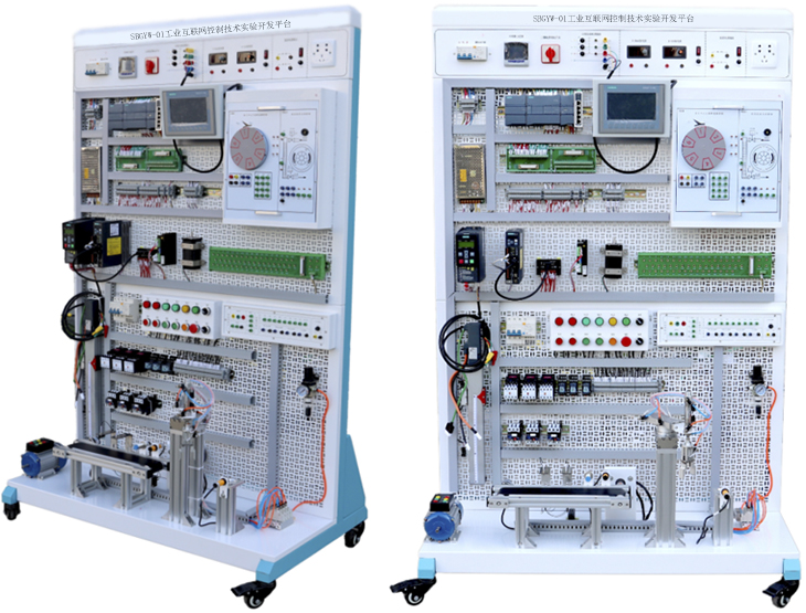 包含模擬量信號和開(kāi)關(guān)量信號,能夠模擬工業(yè)現場(chǎng)的設備運行狀態(tài)。提供三層電梯、自動(dòng)售貨機、機械手、自動(dòng)門(mén)、天塔之光、全自動(dòng)洗衣機、自動(dòng)成型機、紅綠燈、裝配流水線(xiàn)、四路搶答器、音樂(lè )噴泉、軋鋼機、郵件分揀、物料分揀、多級傳輸帶、汽車(chē)電路控制、機床PLC改造控制、隧道監控等模擬控制實(shí)訓(不少于36實(shí)訓模塊),指示燈采用貼片雙色LED,面板采用3D立體彩色搭配設計,使模擬對象更直觀(guān)立體,開(kāi)關(guān)采用自復位兼自鎖一體設計使實(shí)訓能靈活實(shí)用,為適用各類(lèi)PLC模塊具有輸入信號高低電平切換功能。 |