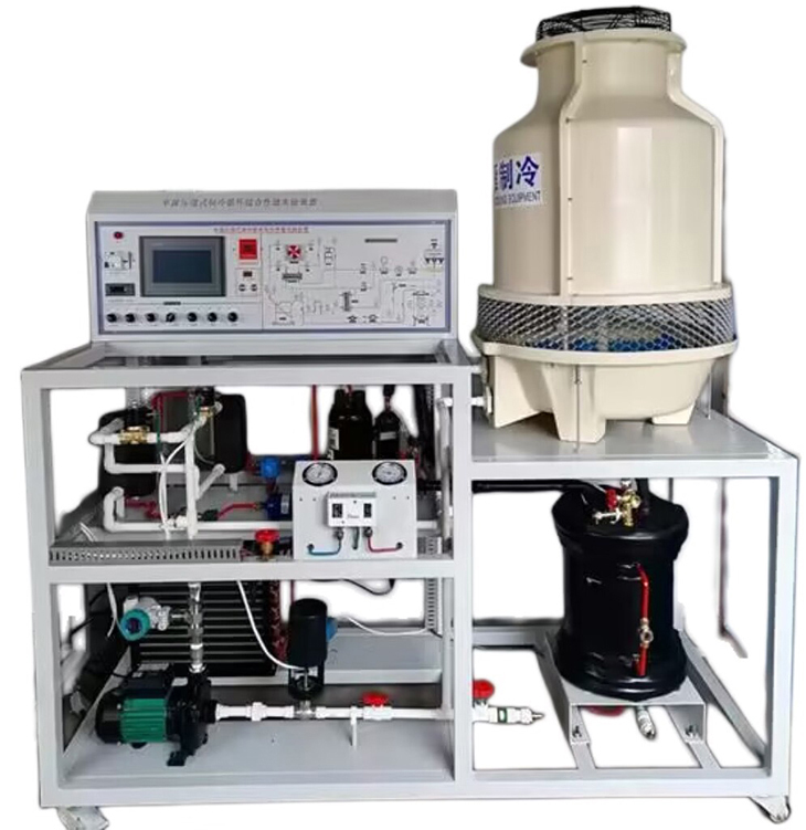 實(shí)驗臺在原來(lái)的基礎上加裝冷卻塔,冷卻水實(shí)現了冷凝水自循環(huán)。冷卻塔流量:3T,電壓220V