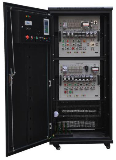 電氣智能控制PLC 技術(shù)實(shí)訓裝置以標準的配電柜為主柜,合理利用柜體的空間,科學(xué)地布置電器及配套實(shí)驗器材,本實(shí)用新型的目的在于克服上述現有技術(shù)中的不足之處,提供一種占地面積小、布局合理、結構緊湊、功能齊全,提高考核效率的創(chuàng )新技術(shù)方案。該種維修電工教學(xué)柜式實(shí)訓考核裝置,包括有柜架、觀(guān)察窗、儀表操作盤(pán)、電氣系統、電機機組組成,