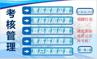 1)該系統由安卓藍牙的故障設置系統和觸摸屏的故障考核系統兩部分組成。教師在講課時(shí),用帶安卓系統的手機或平板電腦遠程無(wú)線(xiàn)設置故障,遠程啟動(dòng)、停止教學(xué)設備,方便教師教學(xué)講課。學(xué)生考核是在觸摸屏故障考核系統上完成的。教師和學(xué)生界面分開(kāi),教師輸入密碼進(jìn)入教師界面出題并設置考試時(shí)間啟用后,學(xué)生才能開(kāi)始考核。教師界面故障類(lèi)型為斷路故障、虛接故障、短路故障三種,教師可任意出題,設置故障后,屏幕上按鈕會(huì )由綠色變?yōu)榧t色,同時(shí)繼電器板動(dòng)作,設備產(chǎn)生故障。學(xué)生在答題界面會(huì )顯示學(xué)號、剩余時(shí)間、故障總數,學(xué)生在設備上檢測查出故障后,選擇相應的故障按鈕,屏幕上按鈕會(huì )由紅色變綠色,故障選擇完畢后,點(diǎn)擊提交試卷后,就會(huì )看到本次考試成績(jì)。