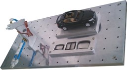 1、涂膠機、固定汽車(chē)模型、車(chē)窗工件板分別固定到操作臺上; 2、機器人通過(guò)吸盤(pán)夾具到車(chē)窗工件板拾取汽車(chē)車(chē)窗;對拾取車(chē)窗到涂膠機進(jìn)行涂膠,完成后把車(chē)窗裝配到汽車(chē)上;而后拾取第二塊車(chē)窗,依次完成前窗、天窗、后窗的拾取、涂膠、裝配任務(wù); 3、練習對機器人點(diǎn)的示教、機器人運動(dòng)軌跡選擇及與涂膠機的配合。 |