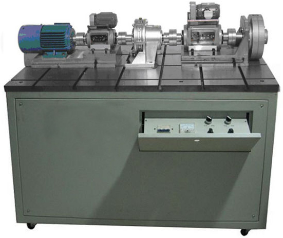 2、驅動(dòng)源:采用直流調速電機,其動(dòng)力輸出端可聯(lián)接帶、鏈聯(lián)軸器等,另一端聯(lián)接光柵角位移傳感器,其圓周方向有測力傳感器,可檢測動(dòng)力輸出的扭矩和速度;