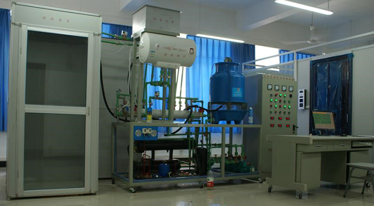 實(shí)訓對象采用不銹鋼鋼架制成,系統由制冷機組、冷卻水系統、媒水水系統、供暖系統等組成。