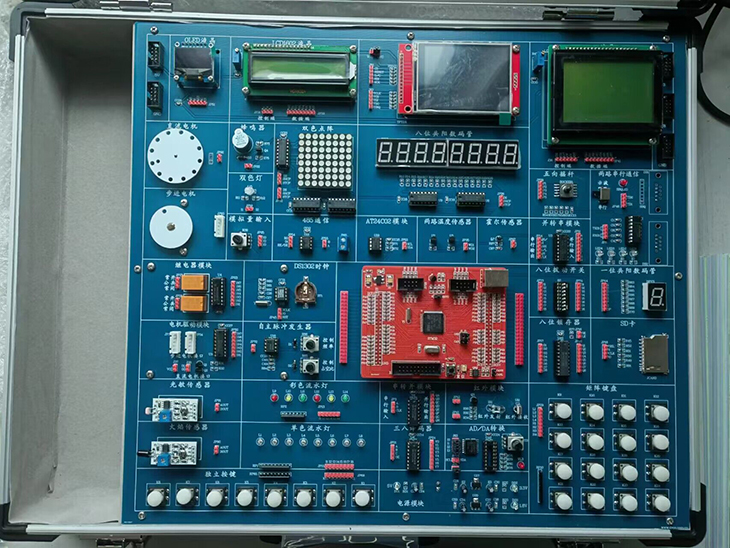 含箱體、電源、STM32 ARM核心系統、實(shí)驗模塊電路。 |