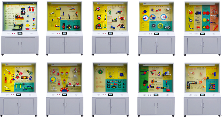 機械元件陳列柜是根據大、中專(zhuān)院校、技校、職業(yè)學(xué)校的機械原理教學(xué)大綱設計的電化教學(xué)設備。本陳列柜具有多功能語(yǔ)音播放控制系統,語(yǔ)音解說(shuō)同步演示,采用單獨驅動(dòng)由電腦或電子設備控制運轉演示,可由遙控控制順序自動(dòng)運行講解,又能根據教材、教學(xué)需要而遙控任意選擇還是單獨演示。模型材料采用進(jìn)口有機板制造,板面附有必要的圖表和文字說(shuō)明,演示形象逼真,運行可靠,制作工藝美觀(guān),使用本陳列柜可提高教學(xué)效果,節約學(xué)時(shí)是一套現代化機械課程教學(xué)應用實(shí)驗室設備。