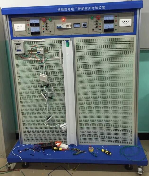 維修電工技能實(shí)訓考核臺,通用維修電工技能實(shí)訓考核裝置主要由鋁合金實(shí)訓臺架和網(wǎng)孔板組成。學(xué)生通過(guò)實(shí)訓線(xiàn)路進(jìn)行元器件的布局安裝,接線(xiàn)全部由學(xué)生自行完成,有利于培養學(xué)生的動(dòng)手能力和操作技能。實(shí)訓項目可自行確定,根據所選的項目選擇相應的元器件,也可作為電工考證的考核理想設備。
