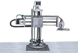 4. 搬運機器人:檢測單元檢測到產(chǎn)品分類(lèi)信息時(shí),通過(guò)通信網(wǎng)絡(luò )將檢測結果傳送到該站,該站通過(guò)坐標式氣動(dòng)機器人將從生產(chǎn)線(xiàn)上送來(lái)的成品送往全自動(dòng)堆垛機,主要由四自由度氣動(dòng)機械手組成,電氣控制部分由PLC完成。