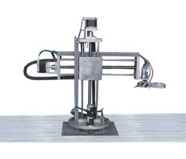 4. 搬運機器人:檢測單元檢測到產(chǎn)品分類(lèi)信息時(shí),通過(guò)通信網(wǎng)絡(luò )將檢測結果傳送到該站,該站通過(guò)坐標式氣動(dòng)機器人將從生產(chǎn)線(xiàn)上送來(lái)的成品送往全自動(dòng)堆垛機,主要由四自由度氣動(dòng)機械手組成,電氣控制部分由PLC完成。