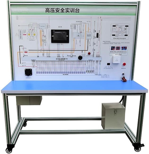 3.面板上安裝有點(diǎn)火開(kāi)關(guān)、電動(dòng)汽車(chē)真實(shí)鋰電池組,電動(dòng)汽車(chē)安全維修塞插頭模塊,高壓電路仿真系統,安全繼電器組件,漏電保護模塊與模擬操縱開(kāi)關(guān)。