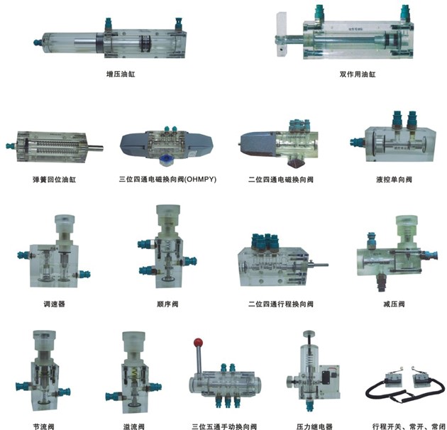 4、實(shí)驗元件均為透明有機材料制成,便于了解掌握幾十種常用液壓元件的結構,性能及用途。掌握幾十種基本回路的工作原理,實(shí)驗組裝回路快捷、方便。