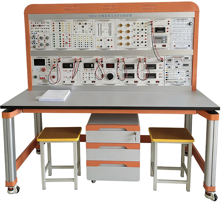 電工電子實(shí)驗平臺由實(shí)驗桌、實(shí)驗臺架、存儲柜、實(shí)驗掛箱組件、配件等組成。