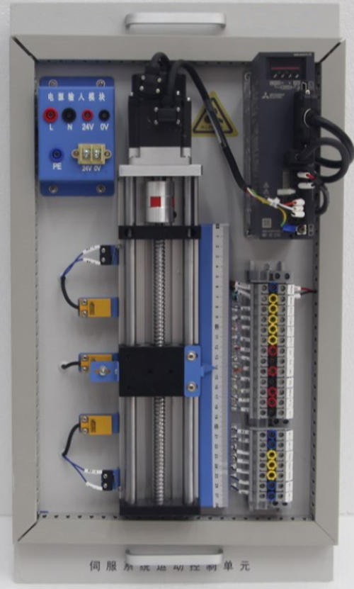 2)對象:包含滾珠絲桿、聯(lián)軸器、刻度尺(0-270mm)1個(gè)、限位開(kāi)關(guān)(滾動(dòng)式)2個(gè)、接近開(kāi)關(guān)(光電)3個(gè)、安裝底板、控制接口等?赏瓿伤欧到y參數的設置、電機正反轉控制、定位控制等。