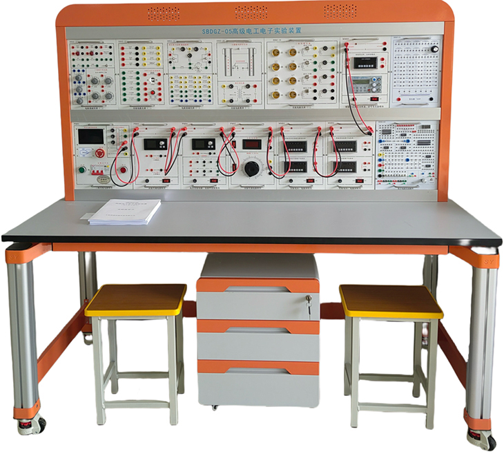 電工電子實(shí)驗平臺由實(shí)驗桌、實(shí)驗臺架、存儲柜、實(shí)驗掛箱組件、配件等組成。