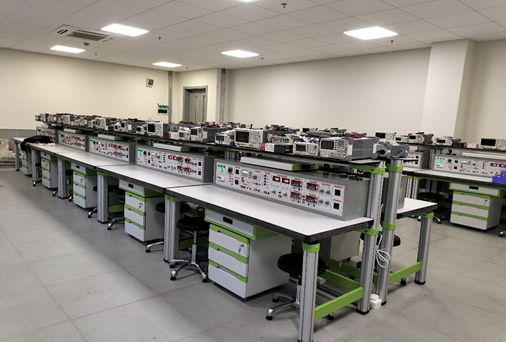 本實(shí)訓臺主要由實(shí)訓主機箱、儀器架、電源控制箱、獨立實(shí)訓電路模塊、實(shí)訓桌(含磁吸式實(shí)訓基座)、儲存柜、學(xué)生凳等組成。
