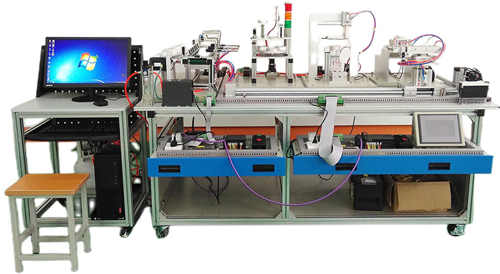光機電氣一體化控制實(shí)訓平臺由由鋁合金導軌式實(shí)訓臺、典型的機電一體化設備的機械部件、PLC模塊、變頻器模塊、按鈕模塊、電源模塊、模擬生產(chǎn)設備實(shí)訓模塊、接線(xiàn)端子排和各種傳感器、計算機等組成。整體結構采用開(kāi)放式和拆裝式,實(shí)訓裝置用于機械部件組裝,可根據現有的機械部件組裝生產(chǎn)設備,也可添加機械部件組裝其他生產(chǎn)設備,使整個(gè)裝置能夠靈活的按教學(xué)或競賽要求組裝具有生產(chǎn)功能的機電一體化設備。模塊采用標準結構和抽屜式模塊放置架,互換性強;按具有生產(chǎn)性功能和整合學(xué)習功能的原則確定模塊內容,使教學(xué)或競賽時(shí)可方便的選擇需要的模塊。設備需完全符合電工電子全國職業(yè)技能大賽所要求,同時(shí)還要求具有可拓展功能,可以組成更加大型的生產(chǎn)模擬系統,以配合各個(gè)用戶(hù)學(xué)校不同層次,不同專(zhuān)業(yè)的教學(xué)及培訓要求。
