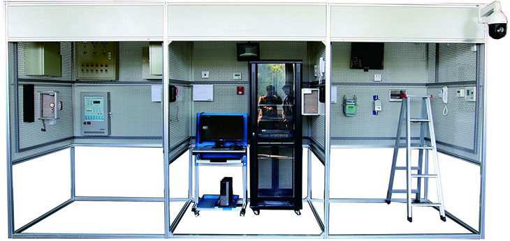 該裝置模擬典型建筑結構,通體采用鋁合金型材和鐵質(zhì)網(wǎng)孔板,并選用市場(chǎng)上技術(shù)成熟、低電壓安全型器件,因而具有真實(shí)、美觀(guān)、可靠和安全的特點(diǎn)。