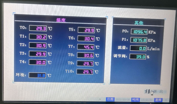 1)采用開(kāi)放式鋼框架結構,各部件布局合理操作方便?刂葡到y由電控柜、10路溫度采集模塊、流量數據采集、電磁閥控制系統、空調組態(tài)監控軟件組成。