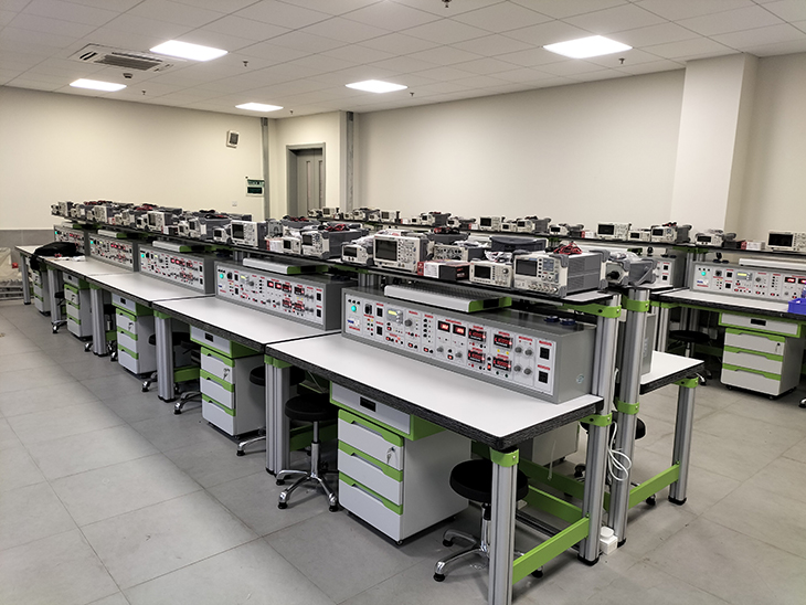 通用電工、電子技術(shù)實(shí)訓裝置,電工電子技術(shù)實(shí)訓平臺用于電工基礎理論驗證性實(shí)驗教學(xué)和電工基本操作技能訓練。以培養學(xué)生理論聯(lián)系實(shí)際,分析、解決問(wèn)題的能力和實(shí)踐動(dòng)手能力。實(shí)訓臺具有較完善的安全保護措施,較齊全的功能(詳見(jiàn)實(shí)訓臺結構簡(jiǎn)介)。實(shí)訓桌中央配有通用電路板,電路板注塑而成,表面布有九孔成一組相互聯(lián)通的插孔,元件盒在其上任意拼插成實(shí)訓電路,元件盒盒體透明,直觀(guān)性好,盒蓋印有永不褪色元件符號,線(xiàn)條清晰美觀(guān)。盒體與盒蓋采用較科學(xué)的壓卡式結構,維修拆裝方便。元器件放置在實(shí)訓桌下邊左右柜內,大大提高了管理水平,規劃化程度,大大減輕了教師實(shí)訓準備工作。