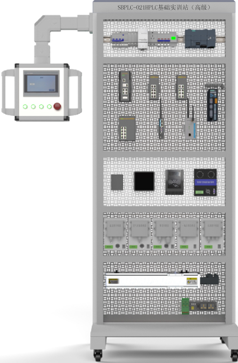 PLC基礎實(shí)訓站(高級)PLC基礎及運動(dòng)控制實(shí)訓平臺集成了高精度伺服和步進(jìn)運動(dòng)單元,用于實(shí)現精密位置控制,并配備了智能單相電表、智能語(yǔ)音控制模塊、高速交換機等,以實(shí)現高效的電力監測、語(yǔ)音交互及數據通信;物料輸送與檢測模塊包括小型電動(dòng)機驅動(dòng)的傳送帶、變頻器和編碼器,用于物料的自動(dòng)化輸送與位置檢測;氣動(dòng)搬運模塊則通過(guò)氣缸實(shí)現物料的自動(dòng)搬運與定位;綜合控制模塊以PLC為核心,配以觸摸屏、按鈕指示燈等組件,實(shí)現了系統的智能化控制與人機交互。