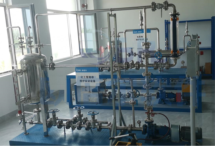 管道拆裝實(shí)訓設備主要由水槽、泵、管道、閥門(mén)、儀表、拆裝工具、清洗設備、試壓設備、工作臺、工具材料貨架、工具箱等構成,不僅可以鍛煉化工離心泵的拆裝能力、設備管路拆裝組合能力,還可以實(shí)訓工藝管路清洗、置換等安全作業(yè)項目,盲板抽堵、動(dòng)火等特殊作業(yè)項目以及離心泵配套管路自動(dòng)化儀表、閥門(mén)的安裝作業(yè)等。