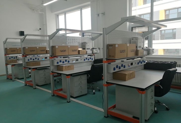 上下2條型材支架,內嵌前后兩塊面板,內部配工業(yè)插座,設有漏電保護開(kāi)關(guān),可對漏電、觸電、過(guò)流、短路進(jìn)行保護。照明:在實(shí)訓臺頂部和儀器臺面下方,控制屏左右同事設置開(kāi)關(guān)控制。靜電手環(huán)報警器:內置防靜電設備報警器2路:實(shí)時(shí)監測操作人員的靜電設備佩戴情況及地線(xiàn)的接入大地情況,遇異常狀況立刻自動(dòng)警報。 |