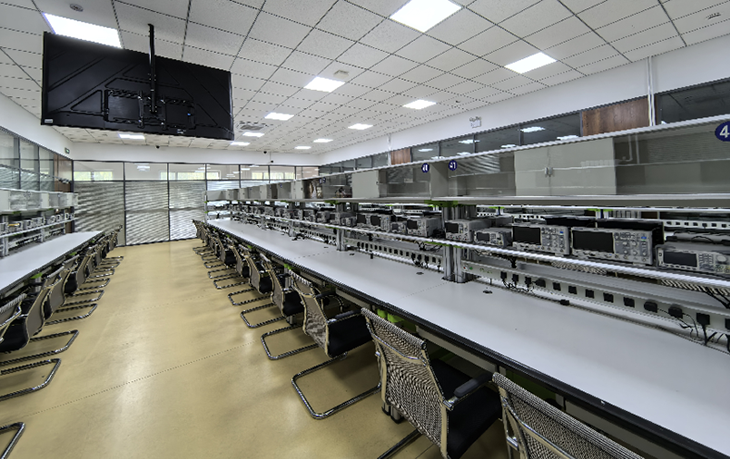 2、電源實(shí)訓屏:電源控制箱特制鋁型材結構,內嵌多組交流220V儀器儀表工作電源插座,并設有獨立漏電保護開(kāi)關(guān),電源控制箱置于儀器架下部,儀器儀表用電安全方便。