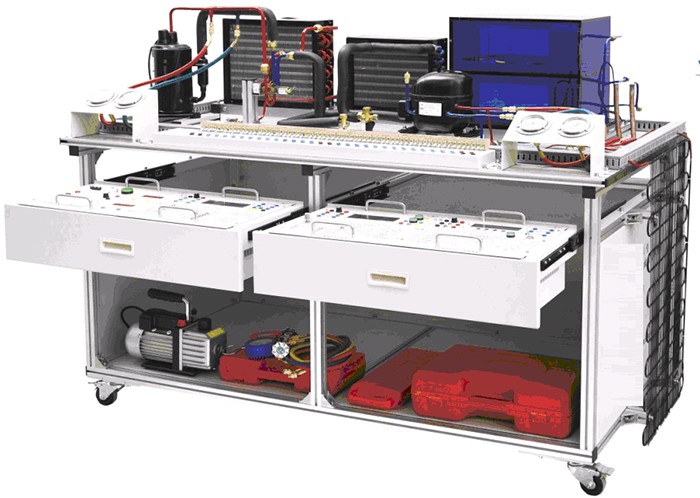 1.該裝置集制冷空調系統安裝、冰箱系統安裝、制冷系統電接線(xiàn)、壓力檢漏、抽真空、 充注制冷劑與運行調試于一體,包含了制冷系統維修的全部步驟,能滿(mǎn)足實(shí)訓教學(xué)、實(shí)際工程訓練及職業(yè)技能競賽的需要。