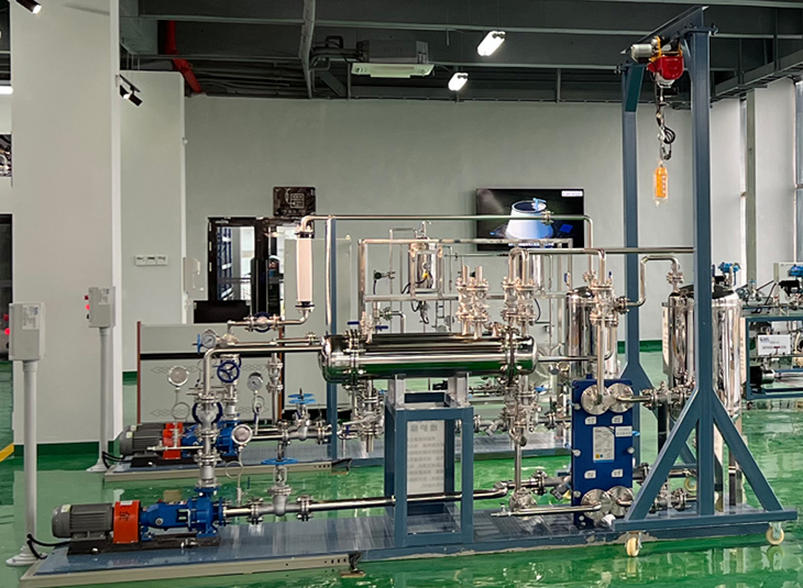 換熱器拆裝實(shí)訓裝置主要由列管式換熱器、浮頭換熱器、離心泵、拆裝工具、清洗工具、工具貨架等組成,用于學(xué)員掌握常見(jiàn)幾種換熱器的內部結構、拆裝作業(yè)、試壓查漏系統作業(yè),以及了解掌握列管式換熱器、浮頭換熱器高壓清洗、試漏、盲板抽堵、系統置換等檢維修作業(yè)流程、壓力容器安全檢驗的有關(guān)知識。配套流體輸送機械、化工儀表和機械制圖等多門(mén)課程的教學(xué)實(shí)踐,如管件識辨、流量計安裝和四大化工參量的安裝、檢測、顯示等。能夠實(shí)現"教、學(xué)、做、訓、考"等一體化教學(xué)實(shí)驗流程。