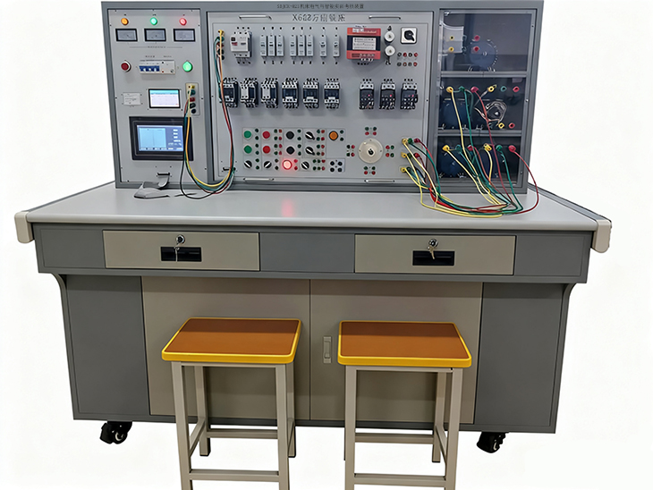 裝置主要有實(shí)訓屏、實(shí)訓機床電路掛箱、實(shí)訓桌等組成。