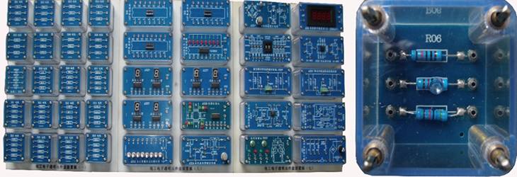 由120個(gè)透明模組成,模塊塊使用透明的元件盒子,可以正反觀(guān)察電子元件組成,各個(gè)電子元件分別安裝在PCB板上,做實(shí)驗時(shí)可以用導線(xiàn)連接,可以學(xué)習電子電路基礎、數字電路技術(shù)、電力電子技術(shù),直流穩壓電源技術(shù)、電壓測量等家電電路上的常用控制電路,