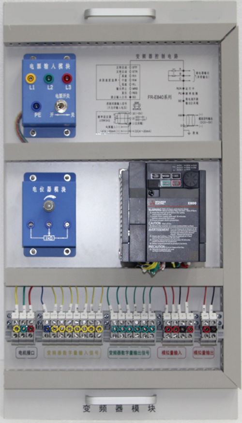 5)電源輸入模塊,強電、弱電采用不同型號連接柱分開(kāi)插拔,避免插錯電源,引起變頻器的損壞。配合電源控制屏的電源輸出,可實(shí)現自由通斷。