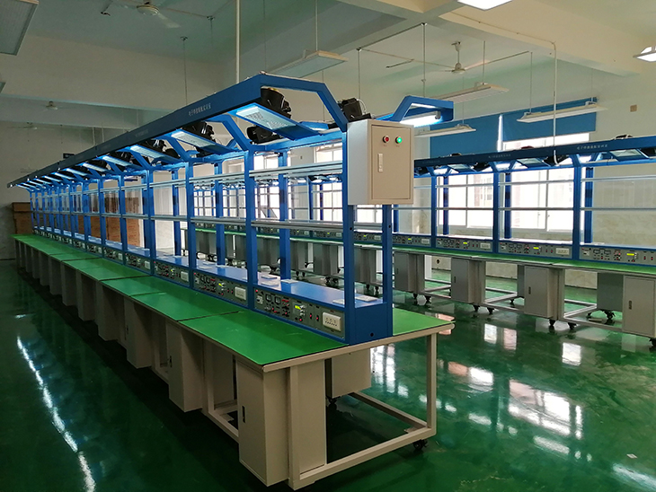 實(shí)訓臺上提供日光燈(用于照明)2個(gè),透明的PVC板4個(gè),可夾放原理圖等資料,另外還配備三芯雙聯(lián)暗插座4個(gè)、兩芯暗插座2個(gè)、工具柜2個(gè),工作臺面設有綠色防靜電桌墊,整個(gè)裝配線(xiàn)安全可靠。