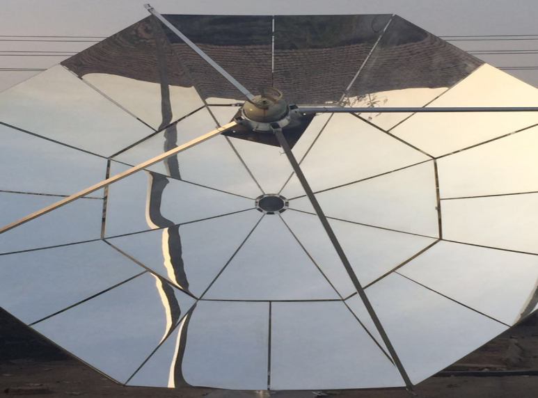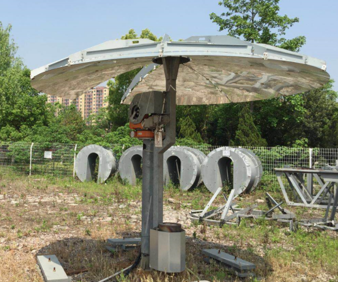集熱器樣式,類(lèi)似美國Infinia英菲尼爾公司斯特林聚光碟樣式,此樣式特點(diǎn)是反光拋物面具有扇形開(kāi)口,與立柱交叉。