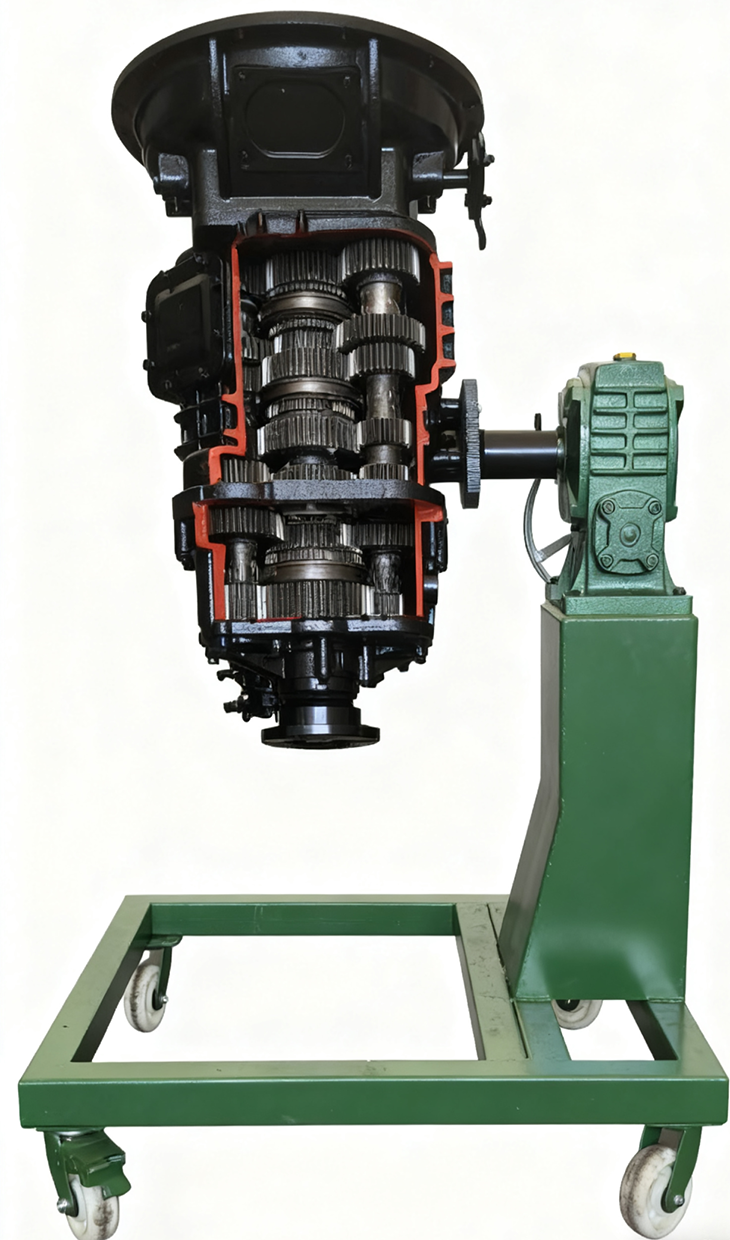 天錦變速器解剖運行展示臺采用(翻新)東風(fēng)天錦EQ1120原車(chē)變速器,帶減速翻轉功能,帶萬(wàn)向輪;采用不同顏色進(jìn)行內部零件區分處理,直觀(guān)顯示內部齒輪等部件的結構和工作原理;能夠演示主減速器和差速器工作工程,設置輸出半軸,以便展示動(dòng)力輸出和差速過(guò)程;